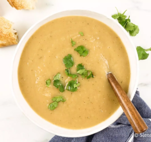 5. Add to a blender (or use an immersion blender) to blend the soup until creamy. Taste and season with salt and pepper. If the soup tastes bitter, you can add a touch of honey or maple syrup to balance the flavor. You can also add a touch of half and half to balance this flavor if your turnips turn out to be on the bitter side.